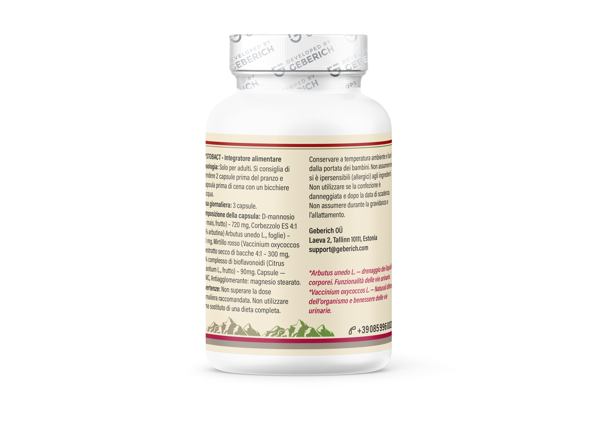 Cystobact is a Swiss food supplement developed to support urinary tract health as part of a balanced diet and healthy lifestyle. The formula combines D-mannose, cranberry extract, bearberry leaf extract, bilberry, citrus bioflavonoids, and vitamin C.