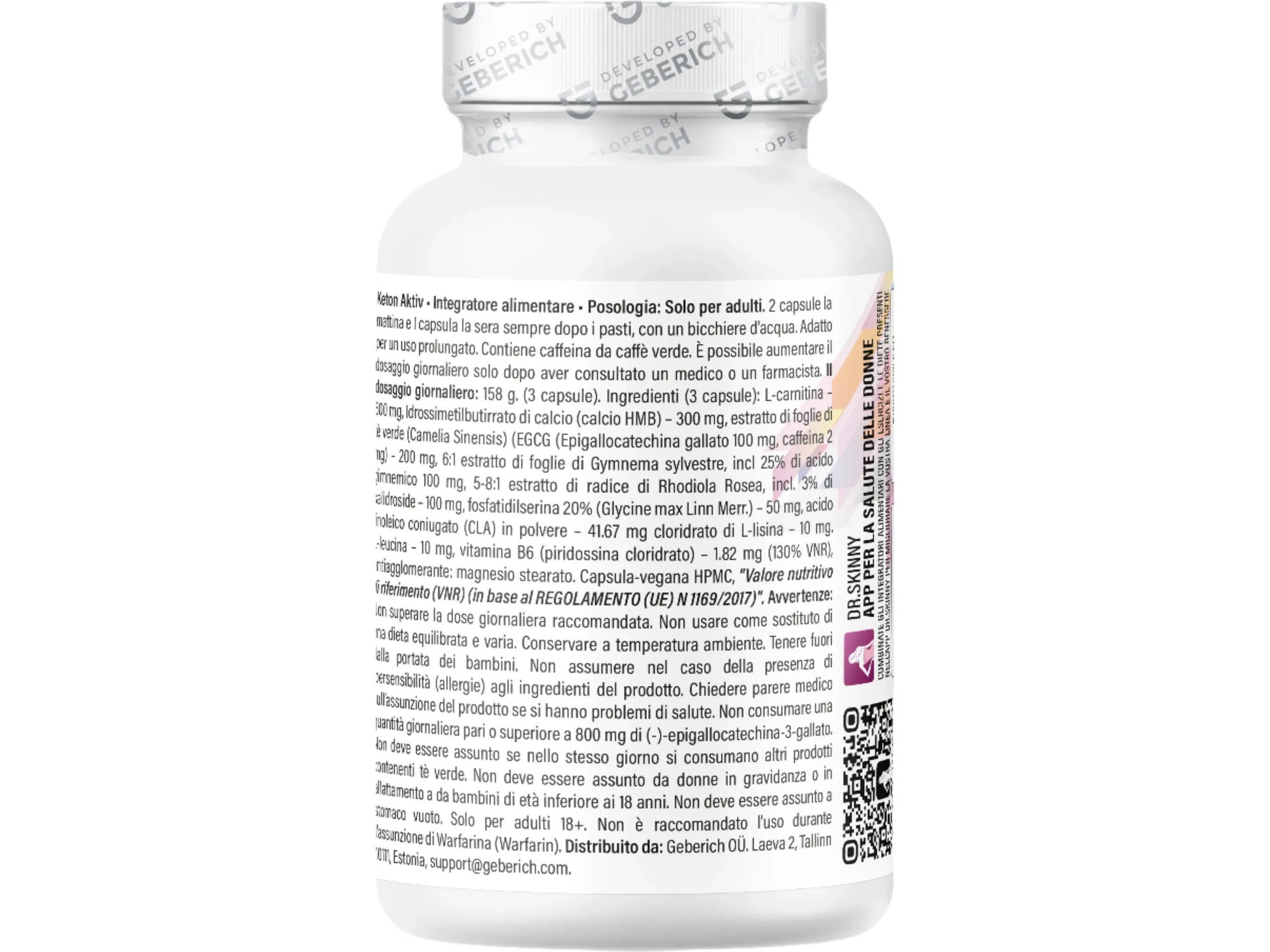 KETON AKTIV è un integratore alimentare in capsule progettato per supportare il normale metabolismo e la produzione di energia. Formulato con L-carnitina, calcio HMB, estratto di tè verde (EGCG), gymnema sylvestre, CLA e vitamina B6, KETON AKTIV offre un approccio completo alla vitalità quotidiana.