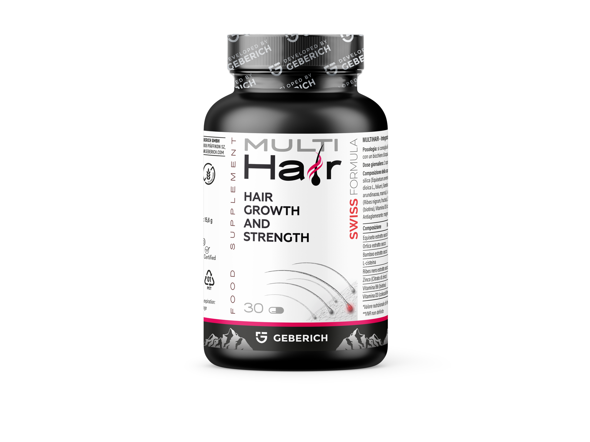MultiHair is a Swiss food supplement formulated with plant extracts, amino acids, and essential vitamins and minerals to complement the daily diet.